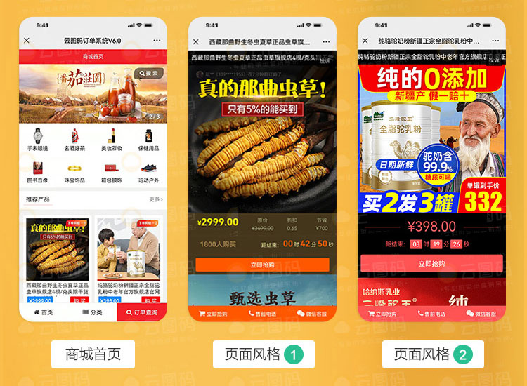 云图码订单系统是自主研发采用流行的php+mysql开发无后门,通过严格的本地测试和服务器测试,请安全稳定放心使用,已经集成微信在线支付接口、支付宝在线支付接口、个人二维码扫描付款,集成物流速查API接口,客户可以实时知晓快递信息,集成第三方短信通知接口。